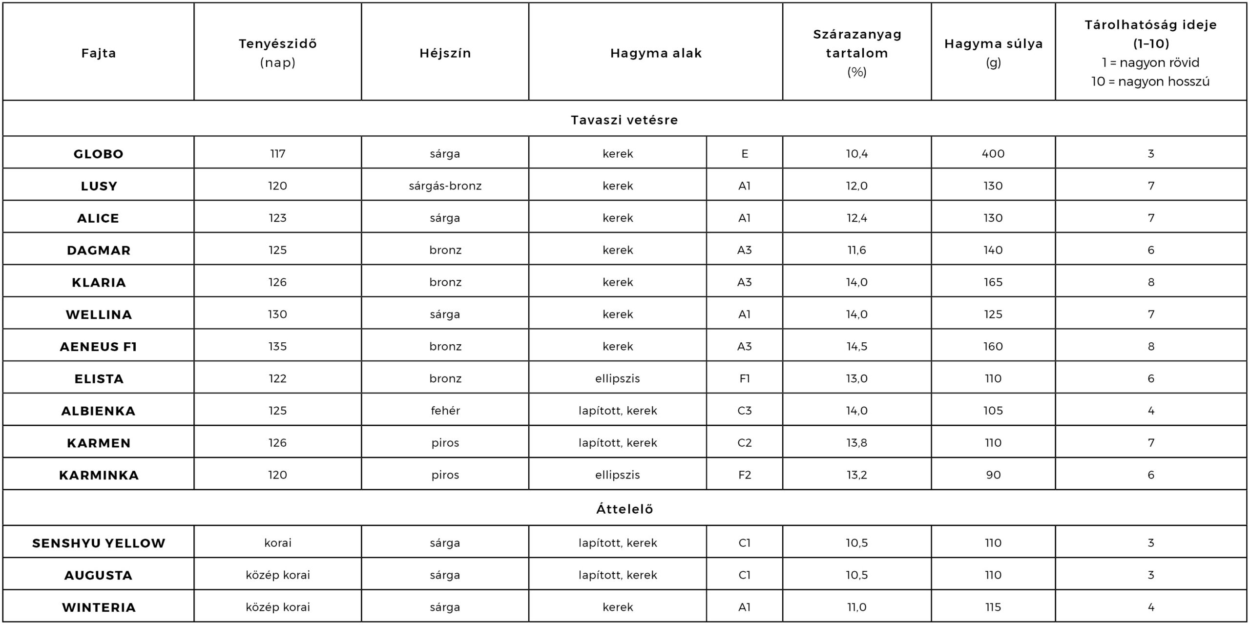 Bőtermő, kései , szabályos kerek, fehér hagymákat nevelő fajta