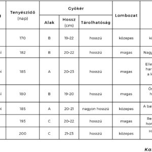 Vetés, kiültetés: 1000-1600 ezer tő/ha |