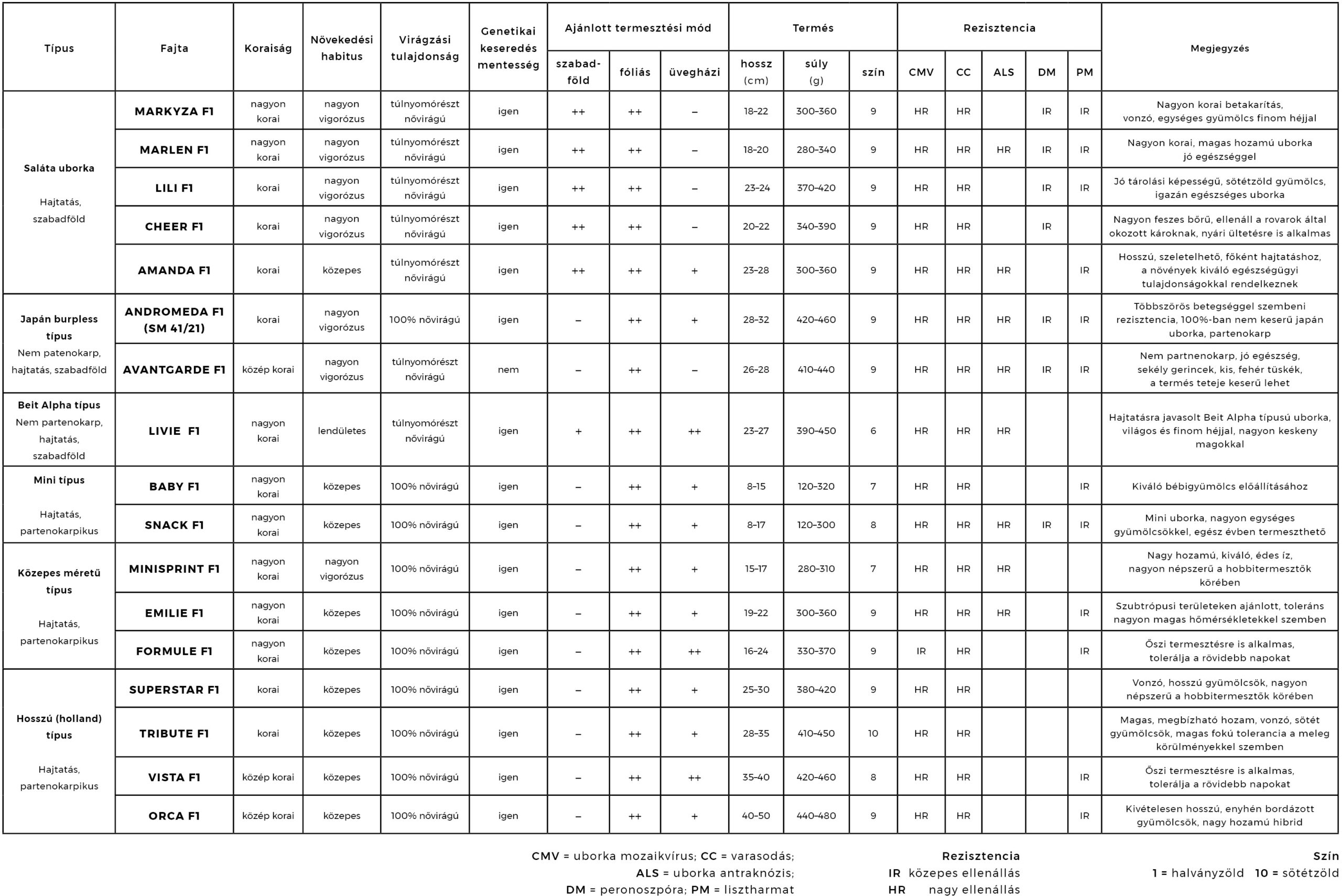 | Uborka vetőmag mennyisége: 0,8-1,5 kg/ha |