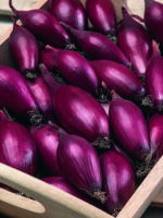 Ellipszis alakú, lila színű páncéllal rendelkező vöröshagyma