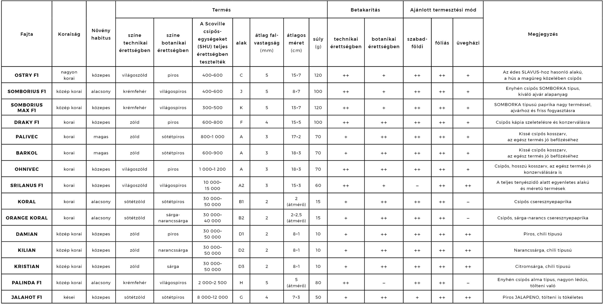 - Középkorai, közepes habitusú, zöldből narancssárgába érő nagyon erős chili fajta.