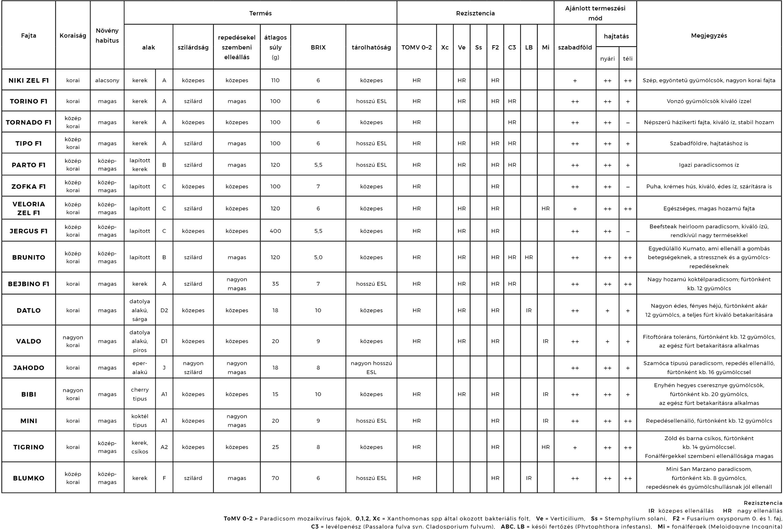 Szép, középkorai indeterminált paradicsom; fényes, enyhén lapított termésekkel (kb. 120 gramm). Bőtermő fajta. Betegségtűrő képessége jó, beleértve a fonálférgekkel szembeni rezisztenciát (HR). Kiválóan alkalmas fajta szántóföldi termesztésre. Zöldség vetőmag katalógusunkat IDE kattintva nézheti meg.TERMESZTÉSI PARAMÉTEREK: