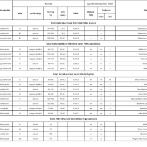 Vetés, kiültetés: 80-120 ezer tő/ha |