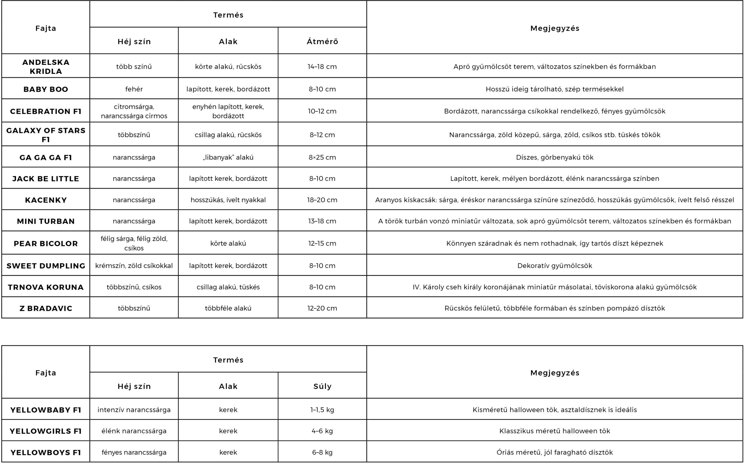Dekoratív dísztökök vonzó választékát kínáljuk, amelyeket dekoratív értékük miatt termesztenek, mivel nagyon vonzóak, színesek és hosszú ideig tárolhatók.